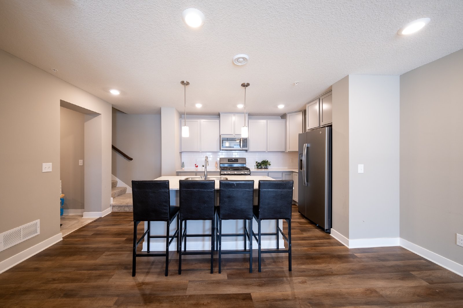 Meticulously maintained and like new 3bd/3ba TH with an open concept main floor! The gorgeous kitchen features black stainless appliances including a gas range, white quartz counters, and a large center island with bar top seating. Convenient half bath off the living space for guests! Upstairs has a loft for a second living space which could be an entertainment space, office, or play room! 3 well sized bedrooms including the primary ensuite with an additional 9x14 sitting room! The private bath has a dual sink vanity and plenty of pantry space. Some other great features include a private patio out front, central A/C, a 2 stall attached garage, and sits in the highly sought after #833 school district.
