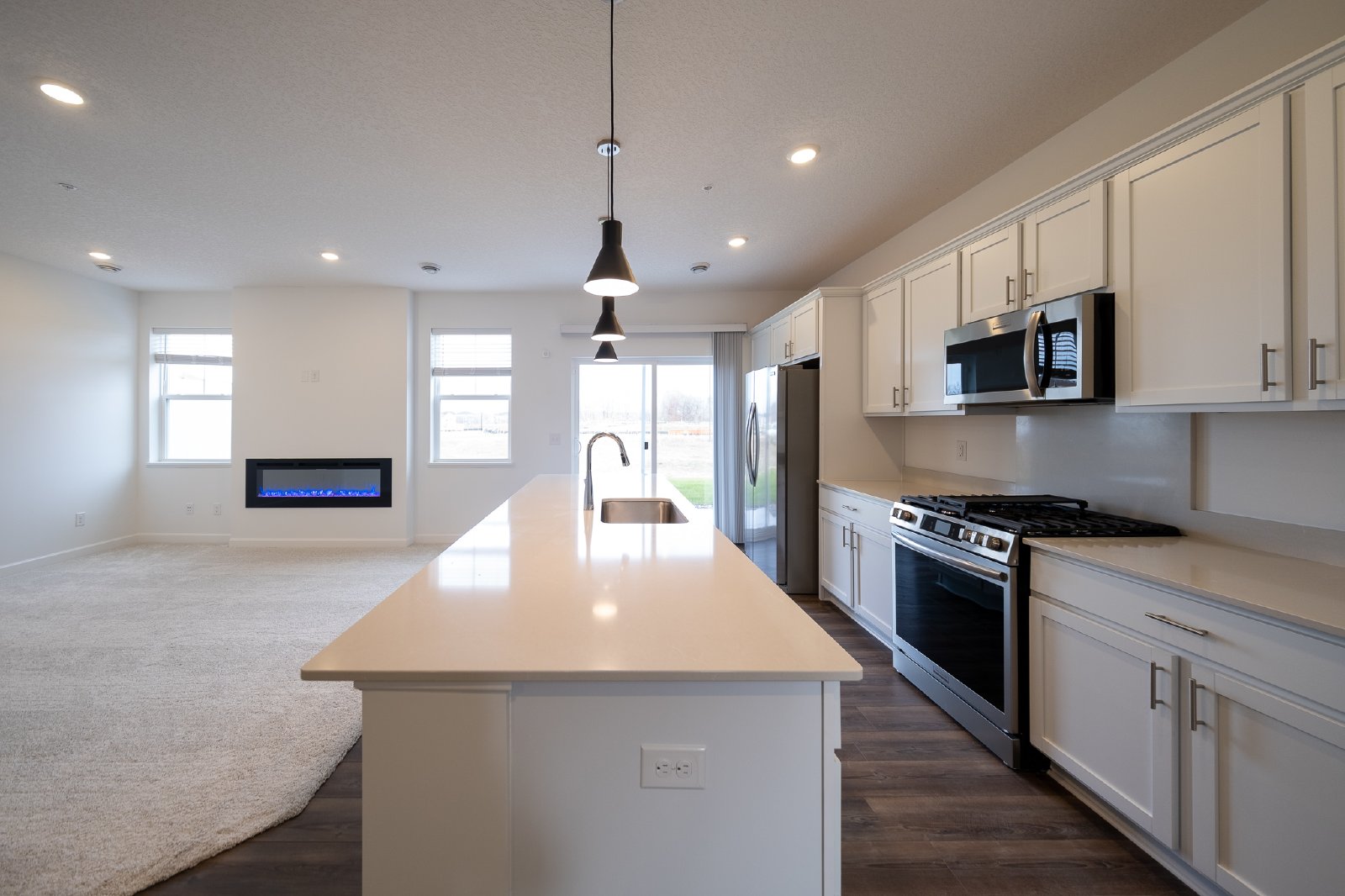 Stunning new construction TH in Hamel/Corcoran! Make this your future home today by applying right online through Mauzy Properties' website. Walking into the home you have a large common space/dining room. Convenient half bath located near garage entry. The home offers a wonderful kitchen with some super unique features such as a meat thermometer in the oven, and lights behind the burner knobs so you are always aware when the stove is on! SS appliances include a fridge/freezer, dishwasher, microwave and gas range, and oven. Living area includes an electric color changing fireplace, perfect spot to cozy up during a MN winter! Upstairs you will find all 3 bedrooms, washer/dryer and a shared bath. The primary suite offers a large walk-in closet and a private bath with a dual sink vanity. Ring doorbell, motion sensors on the main living area, and 3 entry doors provided, but you would need to set up service on your own. 2 car attached garage. School District #284 - Wayzata.