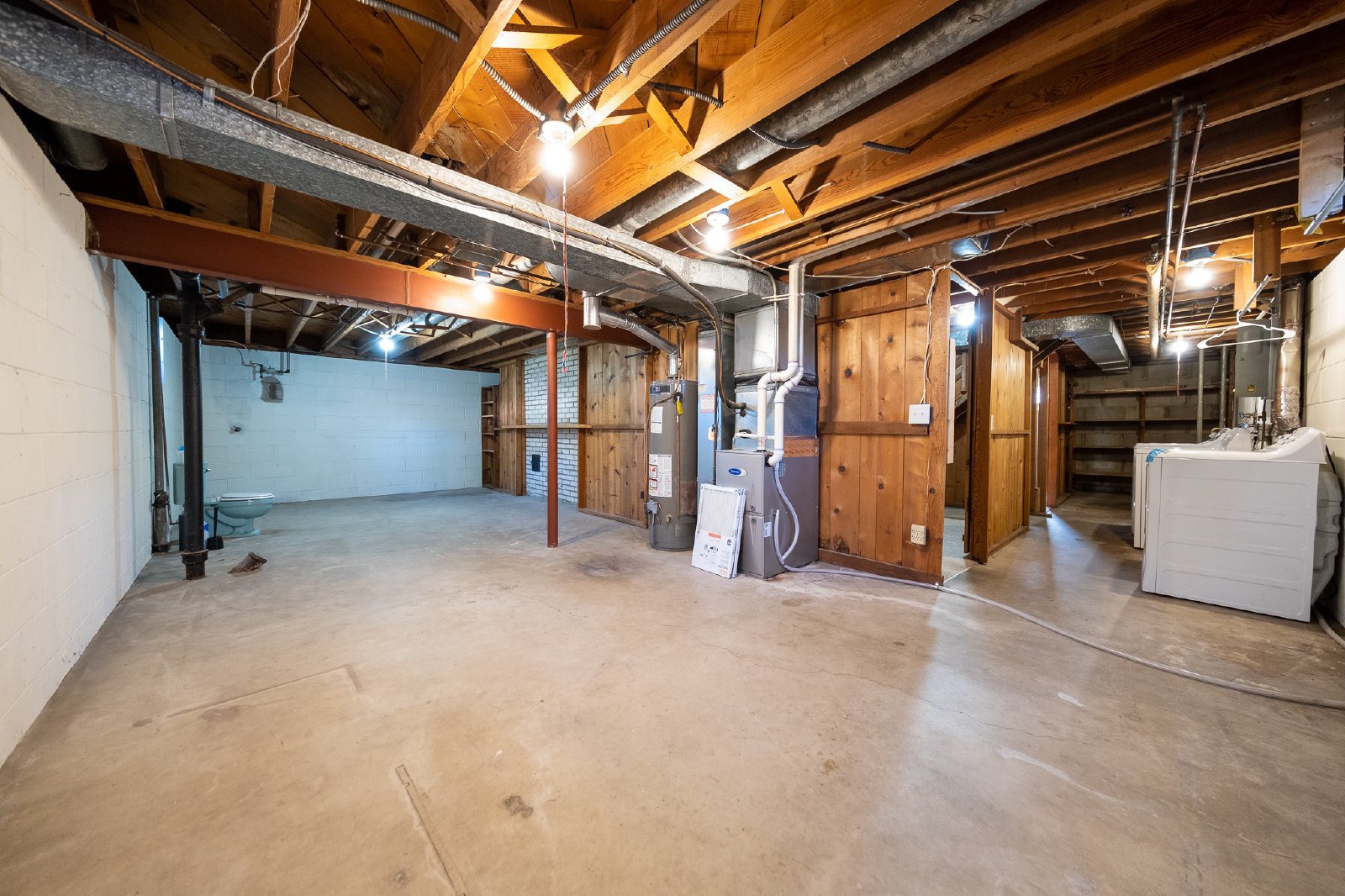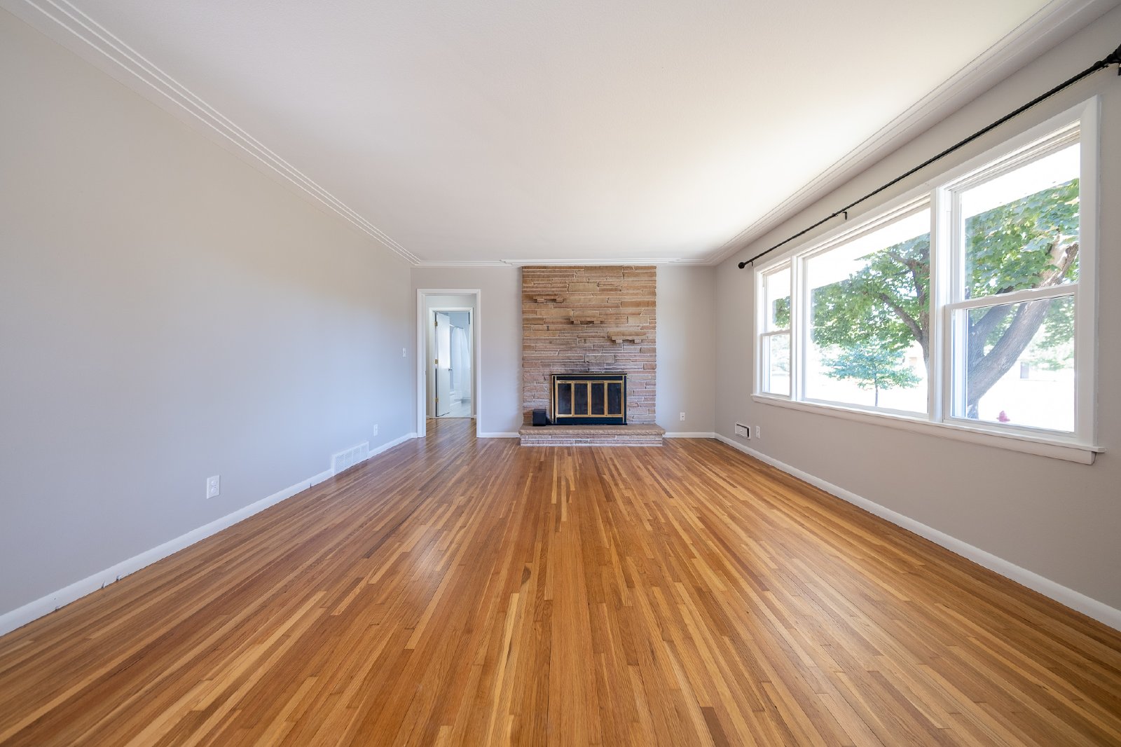 Renovated Bloomington rambler with three bedrooms and one fully renovated bathroom on the main level. Excellent location in a great neighborhood across the street from Bryant Park. The family room has hardwood floors, fresh paint, large picture windows facing the park and a decorative wood-burning fireplace. The kitchen has plenty of cabinet space, as well as freshly painted cabinets and stainless steel appliances. There is also a semi-finished basement, which has a second living room with a decorative wood burning fireplace as well. Secondary toilet in the basemen level too. Plenty of extra storage in the basement, as well as a laundry room with included washer and dryer units. Home has central AC and heat too. It also features a 2 car garage which is accessible through the screened in porch and large back yard.