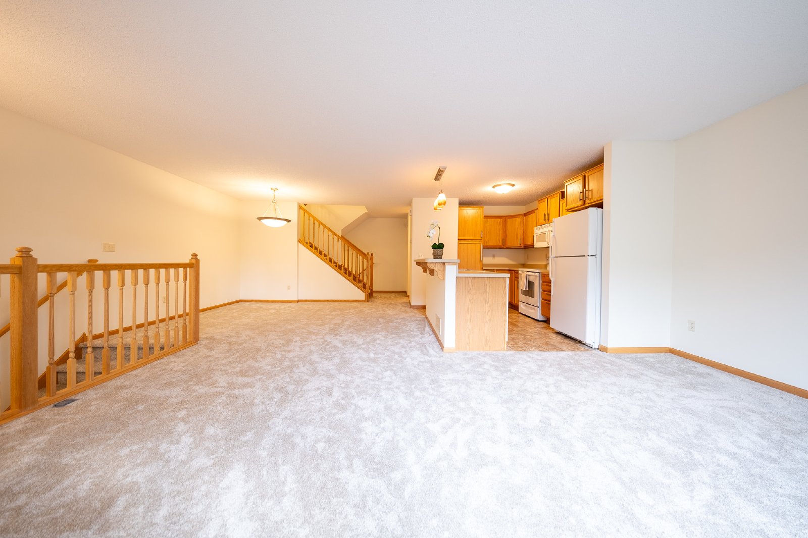 Welcome to 14137 Wilds Path, nestled in the heart of beautiful Prior Lake! This 2-bedroom, 3-bathroom townhome offers 1,565 finished square feet of warm, comfortable living space that's ready for you to call home. From the moment you walk in, you'll appreciate the fresh interior paint, and brand-new carpet. The main level features an open-concept layout that flows effortlessly—perfect for cozy nights in or hosting friends. The kitchen offers quality finishes, ample space, and smart design that makes both everyday living and entertaining a breeze. Upstairs, you'll find a spacious primary suite complete with a private full bath and walk-in closet. The second bedroom is perfect for guests, a home office, or both, with another full bathroom nearby for added privacy and convenience. You'll also enjoy the versatile loft area—ideal for a reading nook, media space, or flexible workspace. Additional perks include an oversized two-car garage and a brand-new maintenance free deck. And the location is a standout—situated right next to The Wilds Golf Club, one of the area's top-ranked courses, and just minutes from Mystic Lake Casino and Canterbury Park. This home offers the perfect blend of comfort, function, and lifestyle.