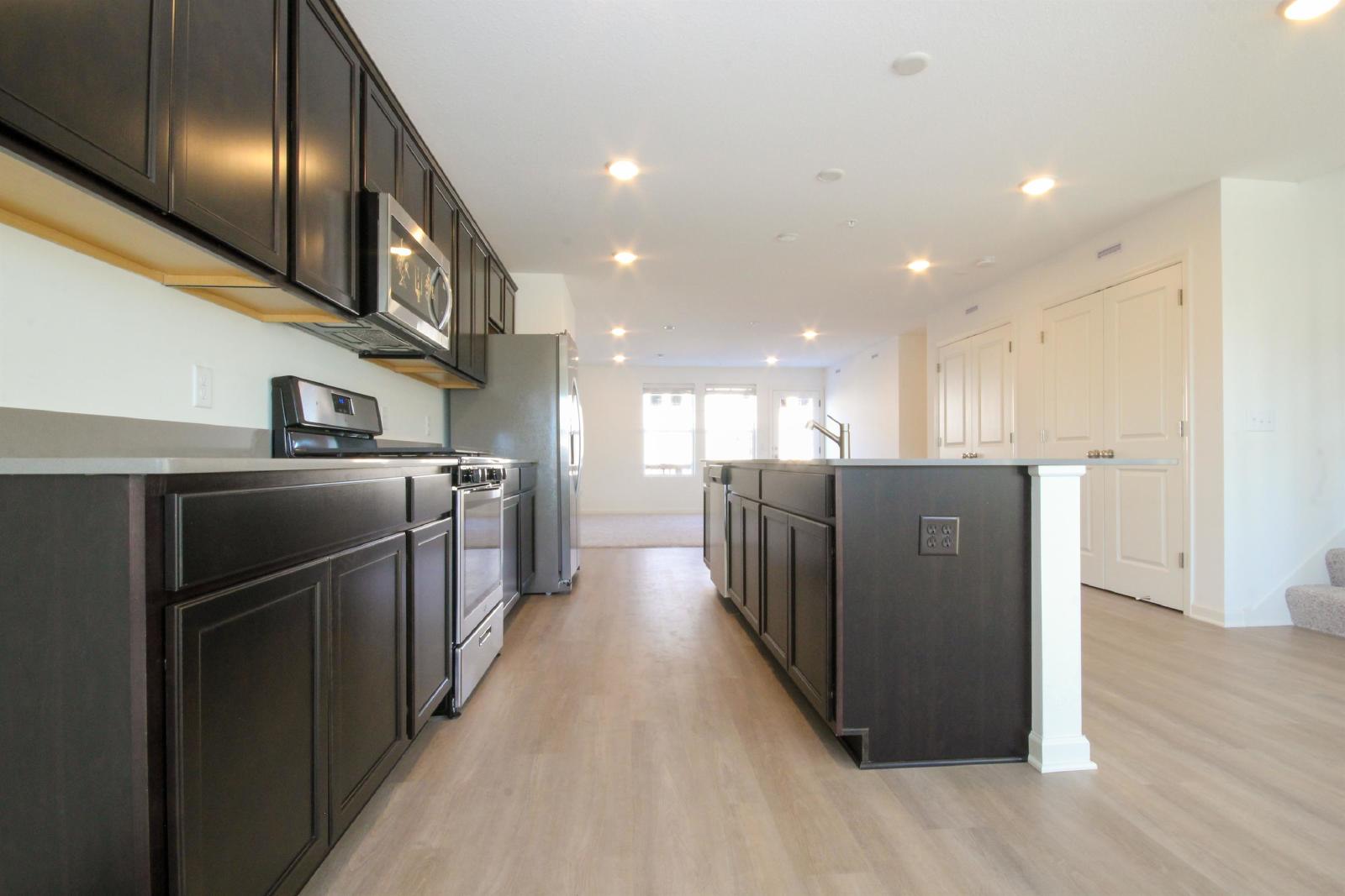 Welcome home to this stunning brand-new end-unit townhome in Apple Valley. As you want into this home from front door you walk to the bonus living room, powder bath, utility closet and garage. Heading upstairs you have access to a front closet and powder bathroom. Then you walk into the BEST part of the home you have a gorgeous wide-open layout that you won't find anywhere else. Two large pantry closets, SS appliances, large island and living room on one side with dining room on the opposite side. The living room has a walk out deck and dining room has extra space for a great reading nook and/or small office space. Available for a quick move in!